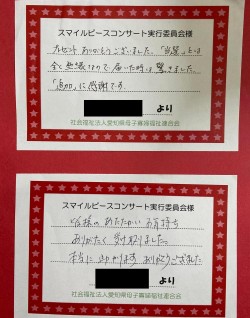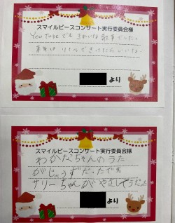 スマイルピースコンサートでは、例年、盲学校のお子さんや、ひとり親世帯のお子さん・ママたちをご招待しております。
